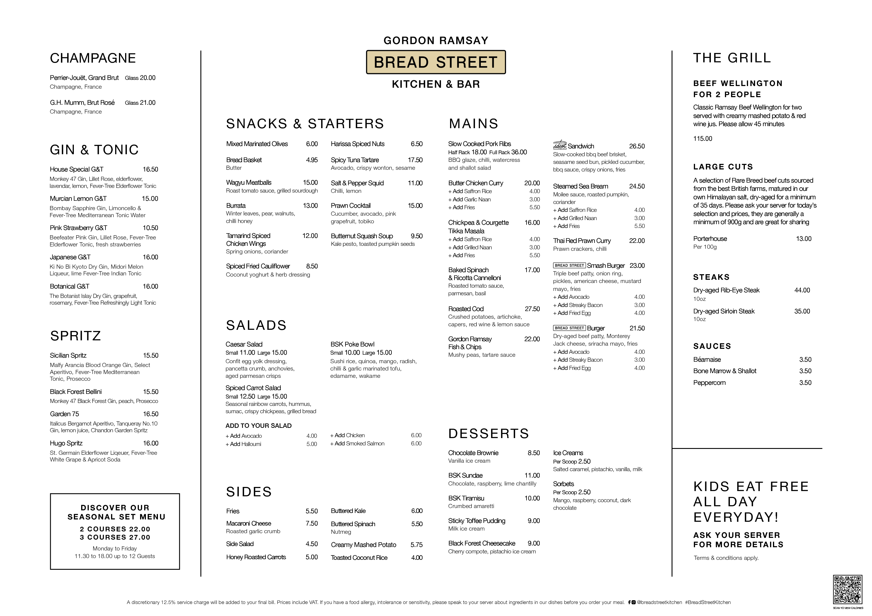 BREAD STREET KITCHEN & BAR MENUS
