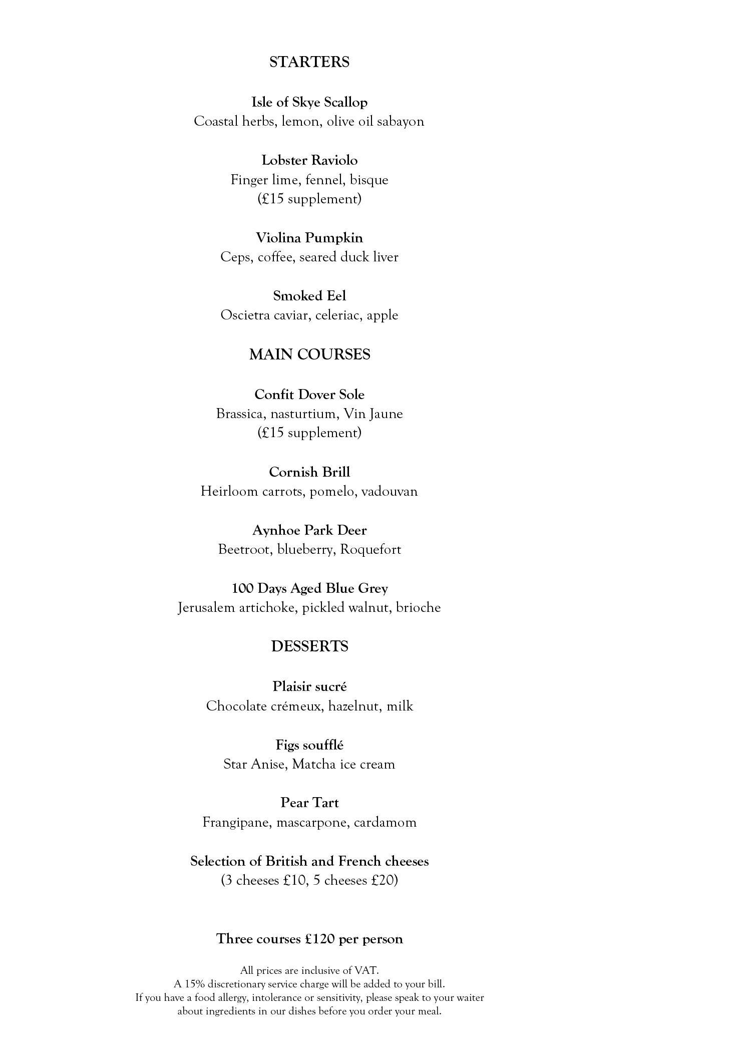 Menus at Pétrus by Gordon Ramsay