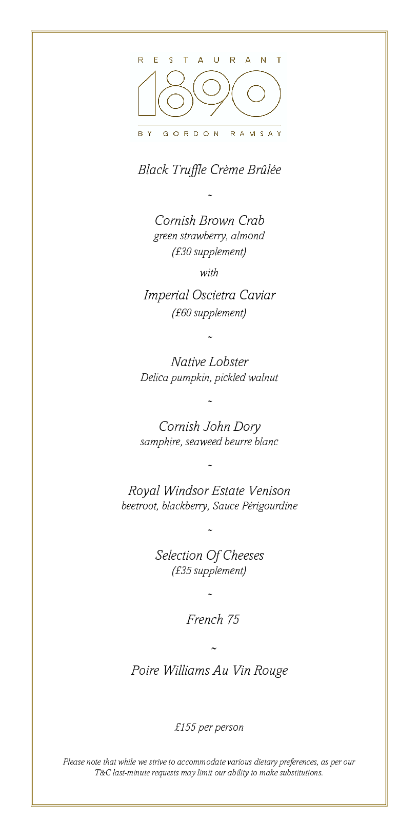 Restaurant 1890 by Gordon Ramsay - Menus