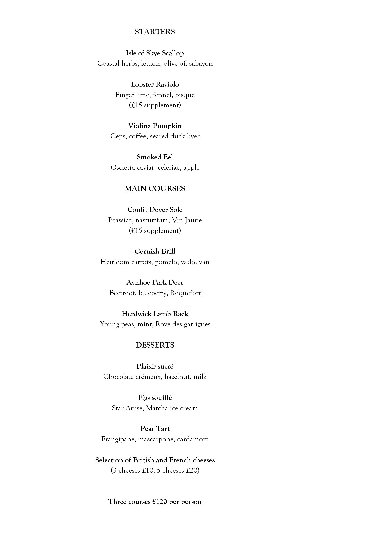 Menus at Pétrus by Gordon Ramsay