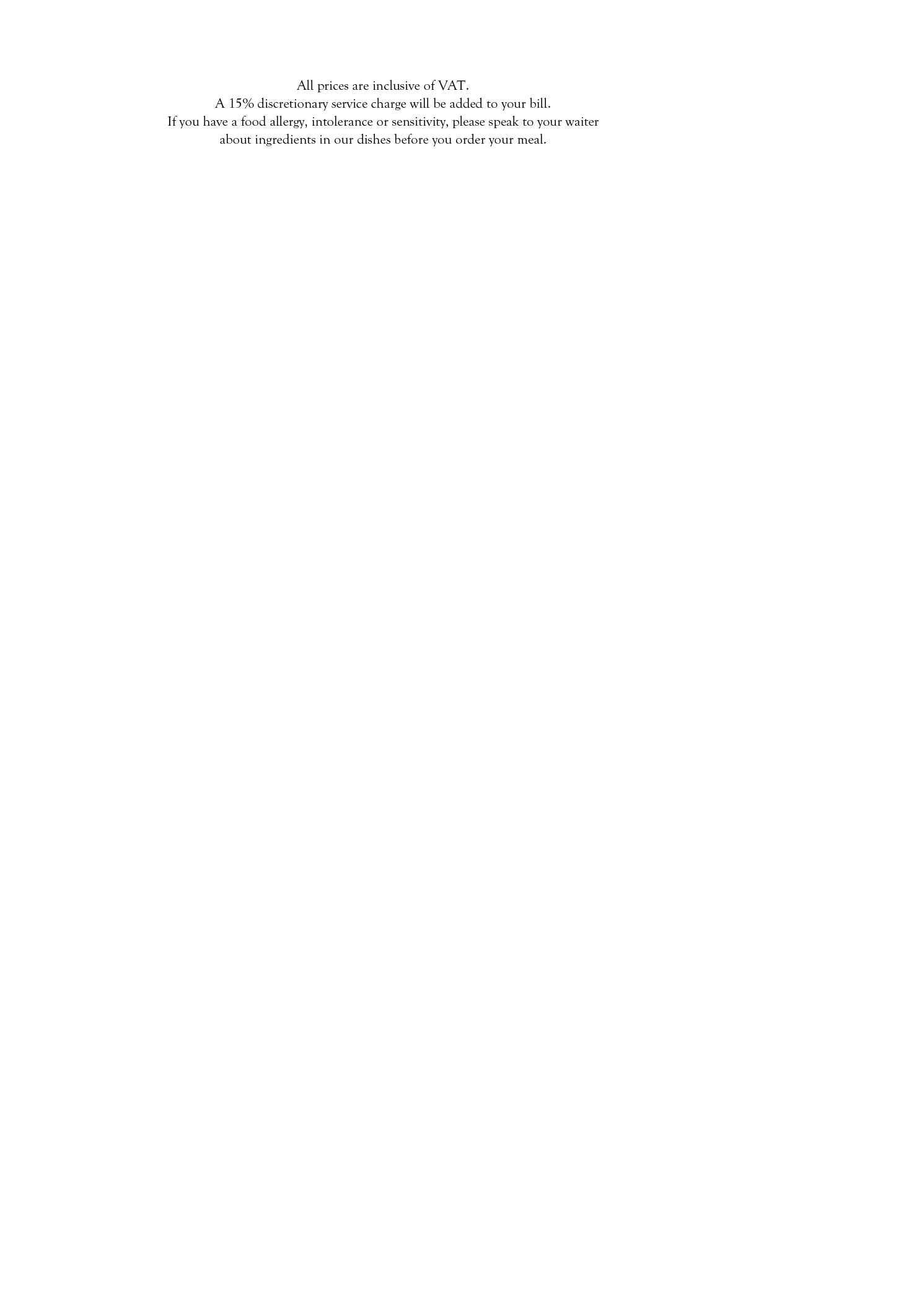 If you have a food allergy, intolerance, or sensitivity, please speak to your server about ingredients in our dishes before you order your meal.
