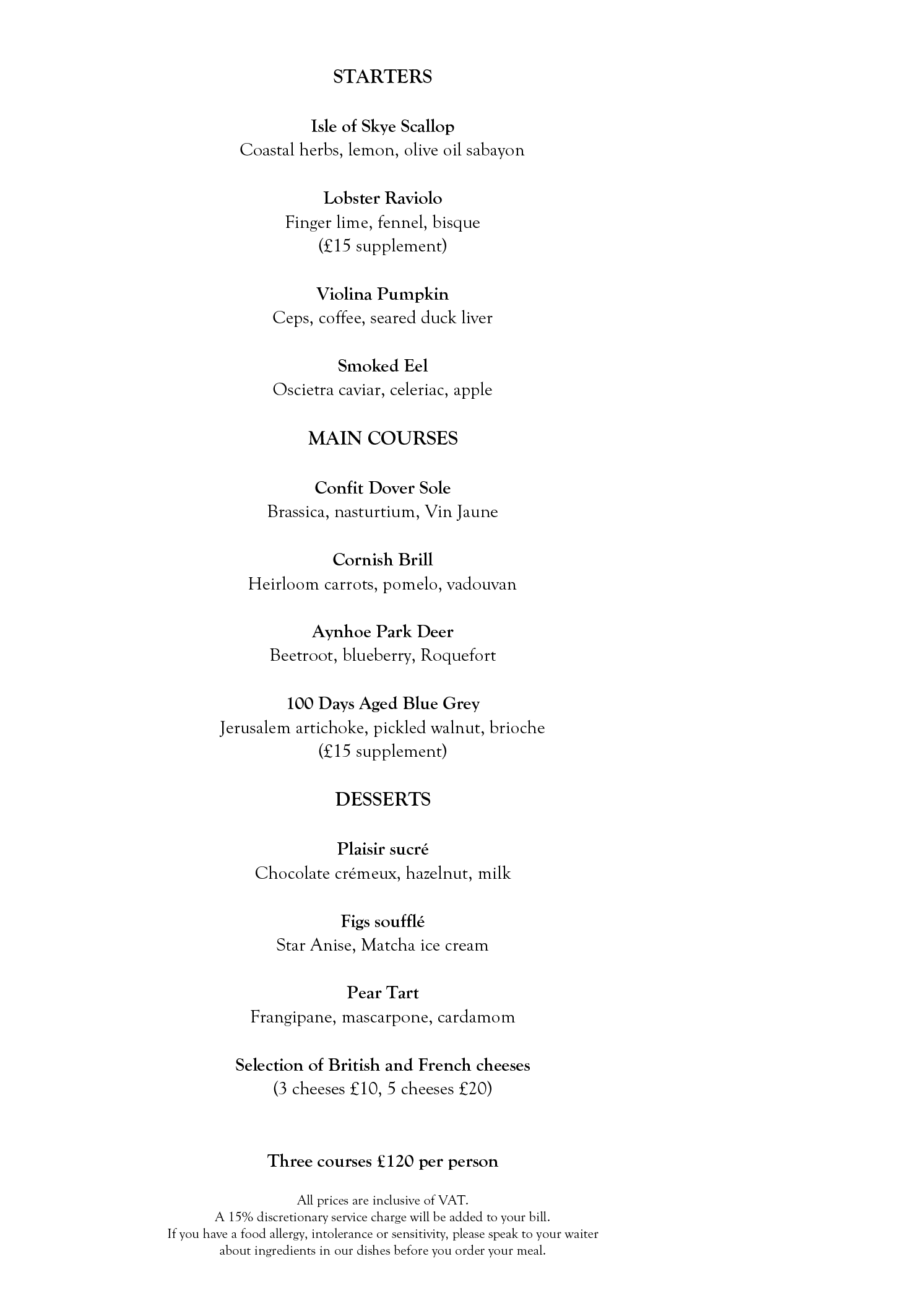 Menus at Pétrus by Gordon Ramsay