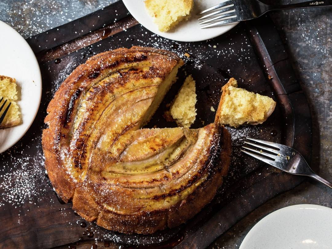 When you are laying the bananas in the tin, make sure thereare no gaps between them and that they are all completely flat. This will be the presentation side when the cake is cooked so it is important that it looks nice!