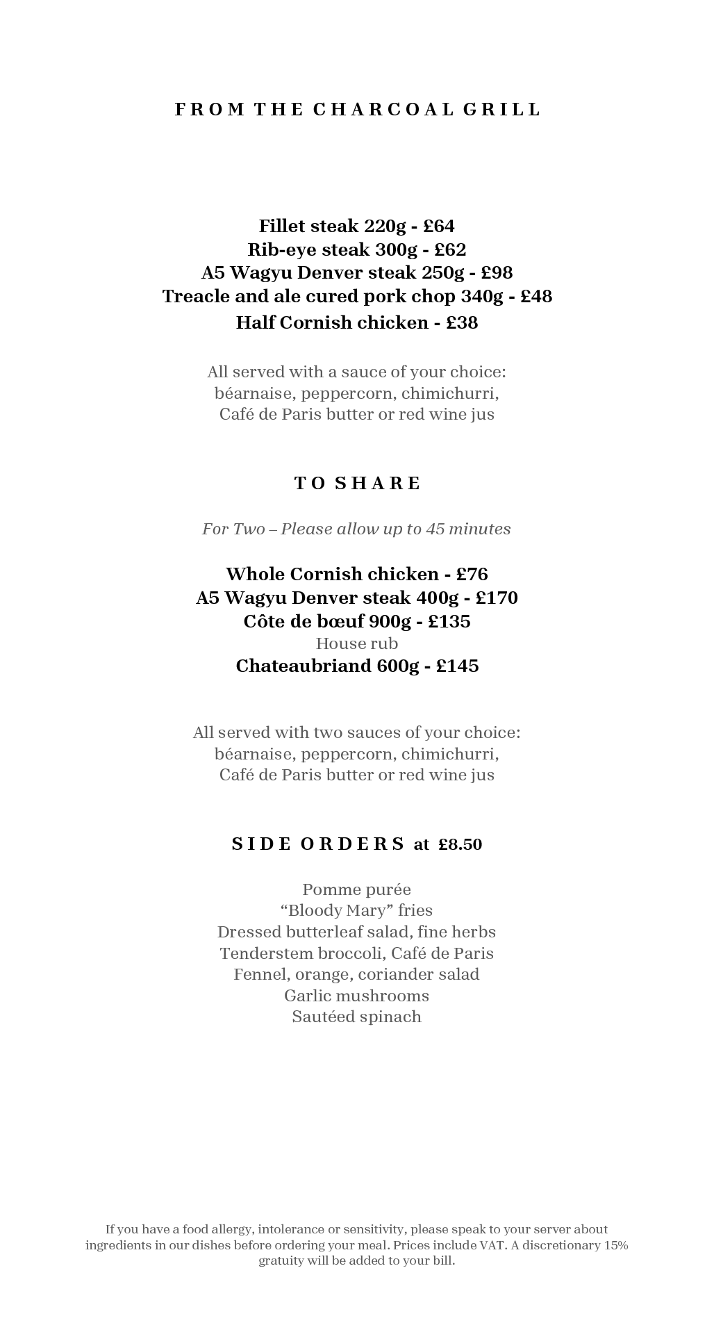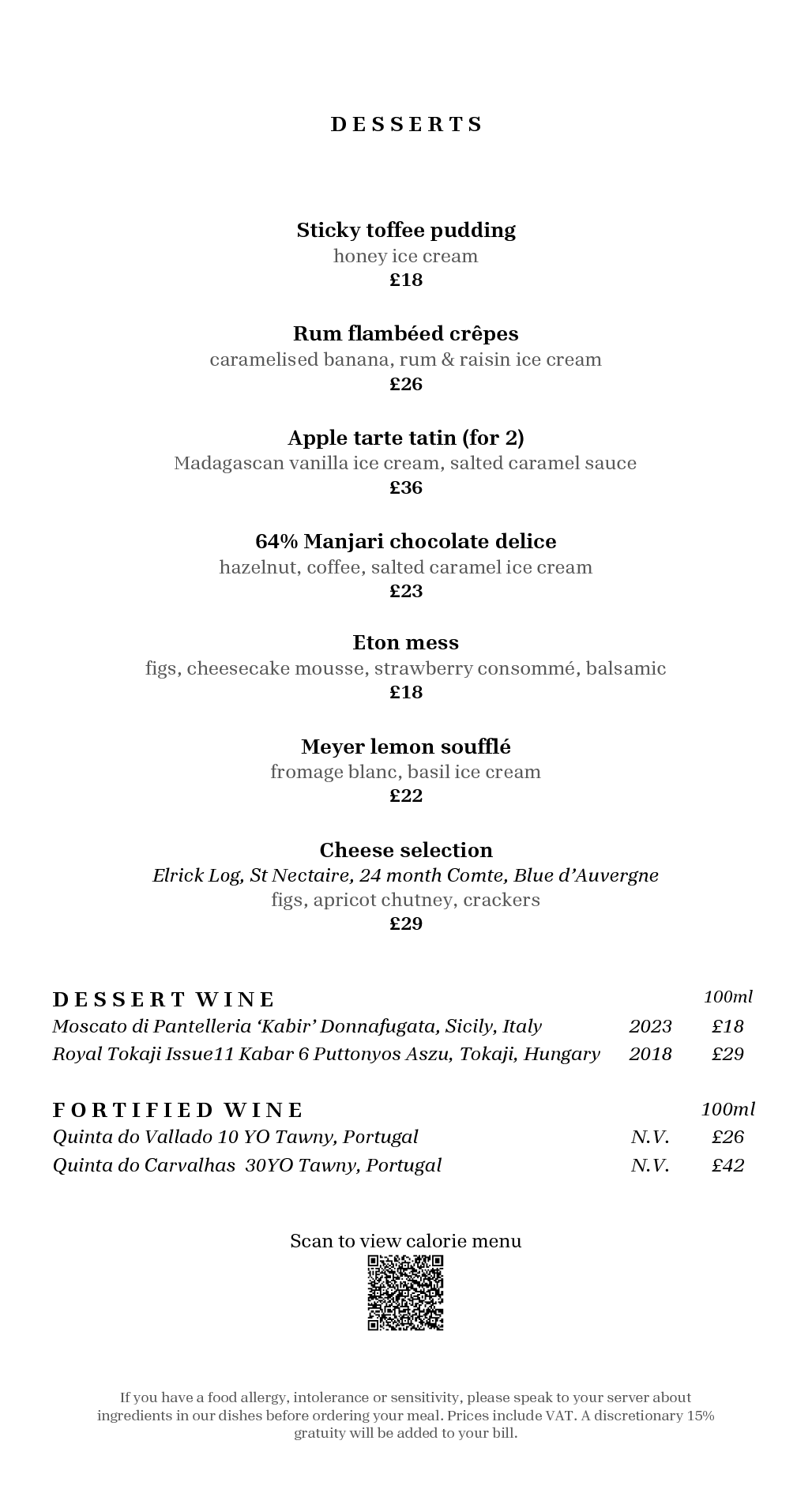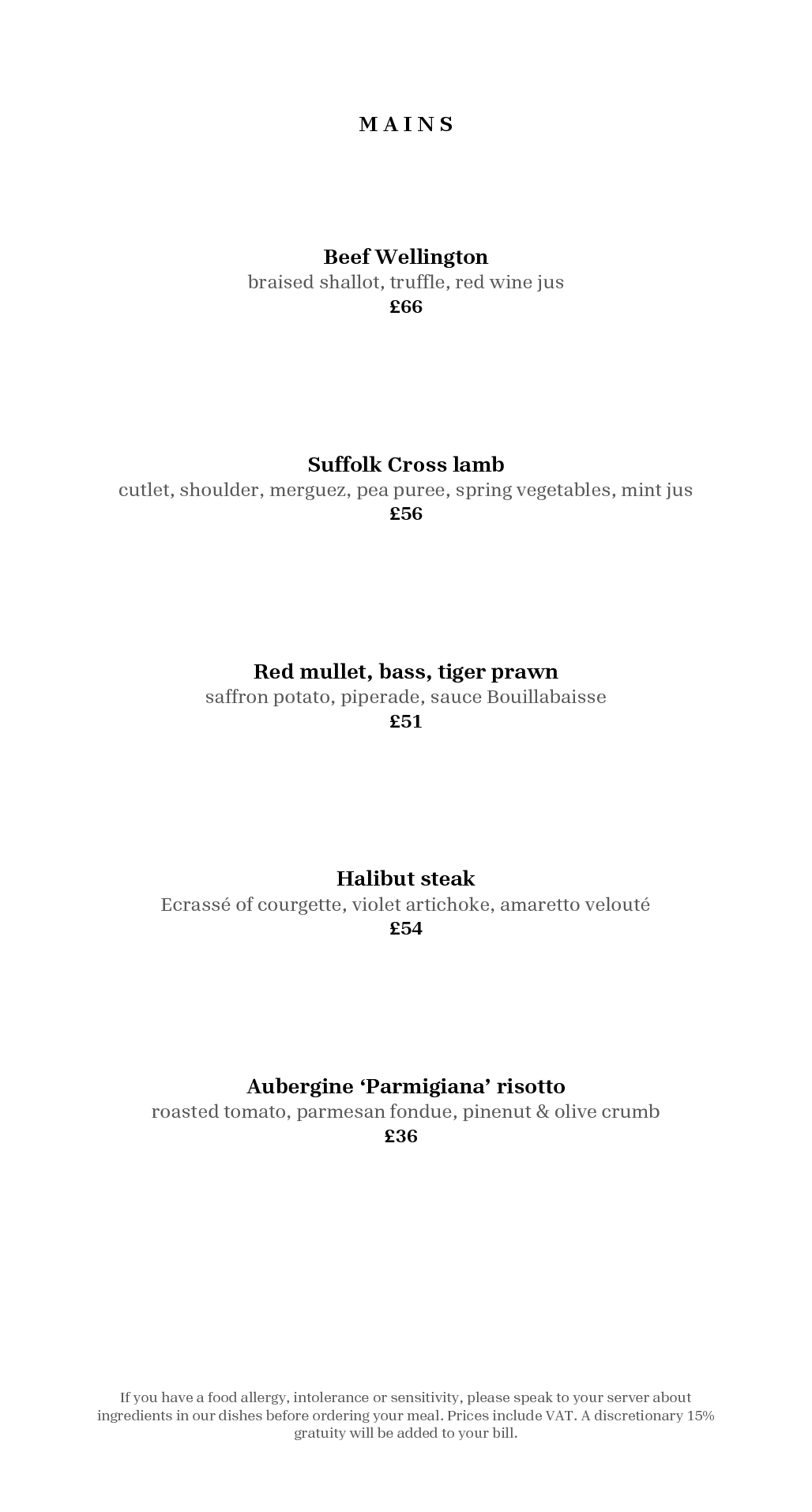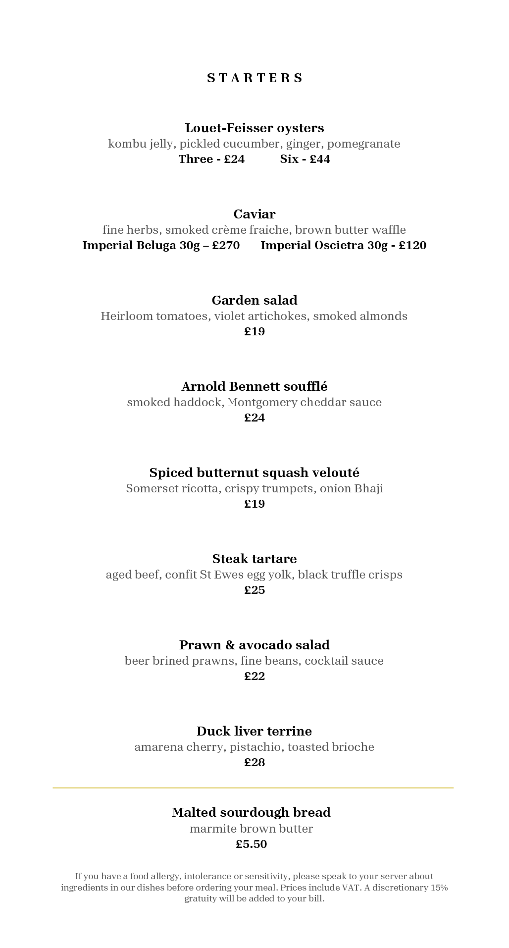 Please note that some of our dishes and menus are seasonal and are subject to change.